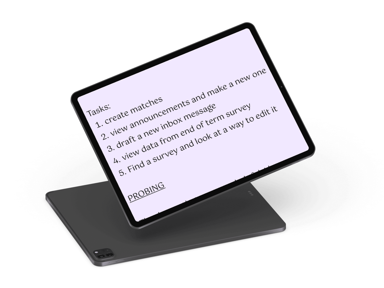 I start with an in-depth consultation to understand the key goals of your testing project. This allows me to craft specific questions that align with what you aim to learn from the testing process. Once questions are drafted, we will meet to review them collaboratively, ensuring they are well-suited to your objectives. I identify and interview up to five participants from your target audience, ensuring their input is relevant and insightful. Your feedback on the questions will be incorporated before finalizing them, granting you the confidence that the testing process reflects your unique requirements.